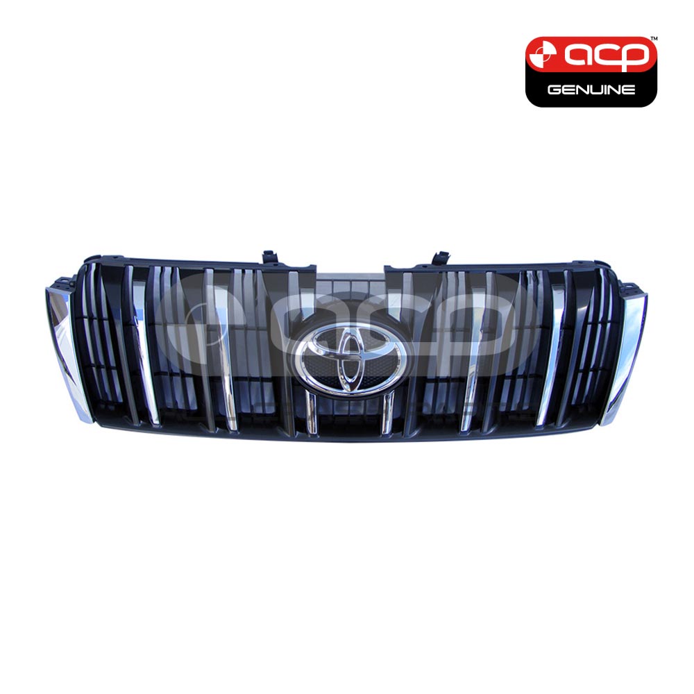 Genuine Grille, without pre-crash system provisions, suits Toyota Prado 150 Series. Fits on Prado GRJ150R GXL and VX models built from 8/2009 to 11/2013, and KDJ150R Kakadu and VX models built from 8/2009 to 11/2013. This grille is a brand new Genuine Toyota part.