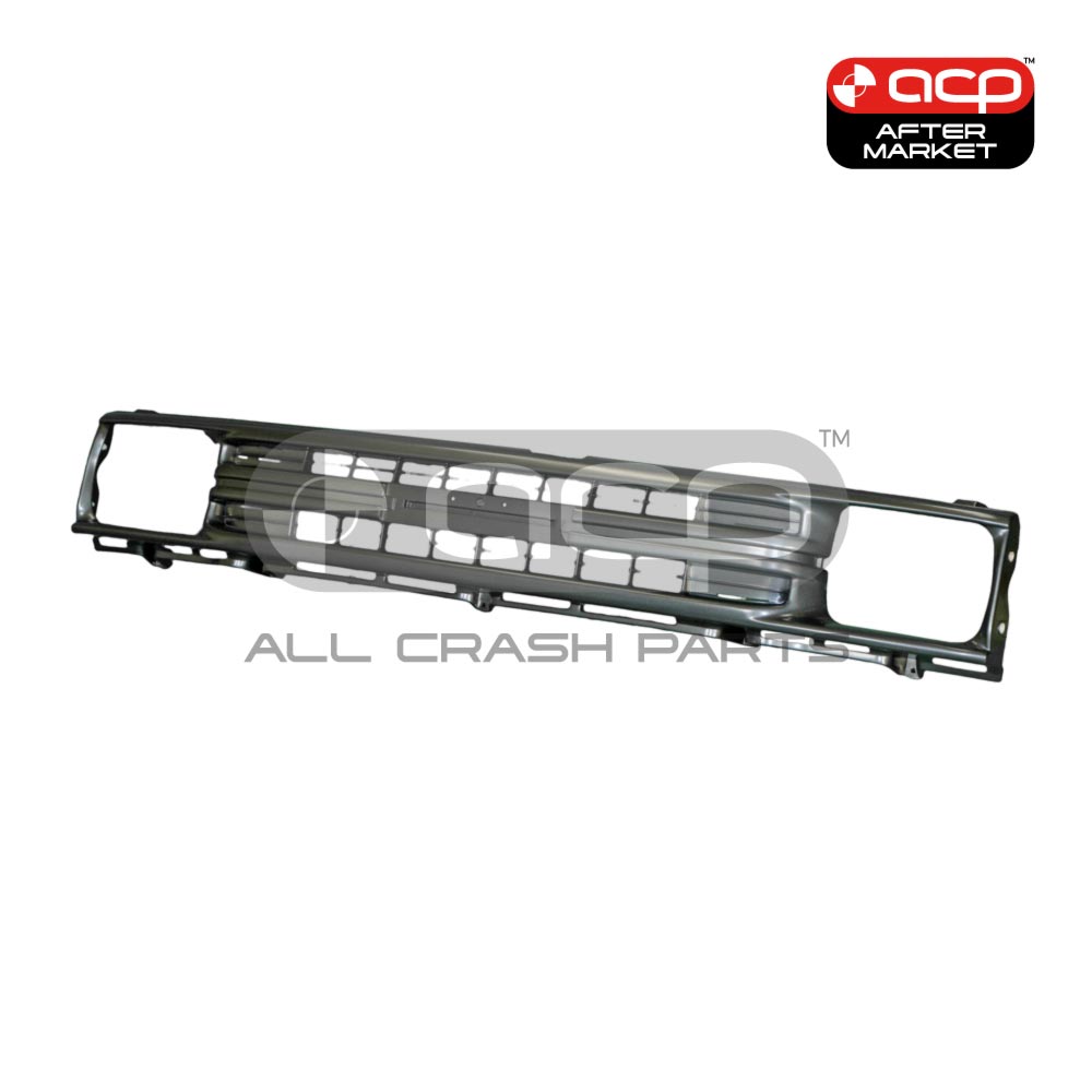 Silver grille suits Toyota Hilux. Fits Hilux LN85R, Hilux LN86R, Hilux RN85R, Hilux RN90R, and Hilux YN85R, 2WD, built from 8/1988 to 8/1991. This grille is a quality aftermarket part.